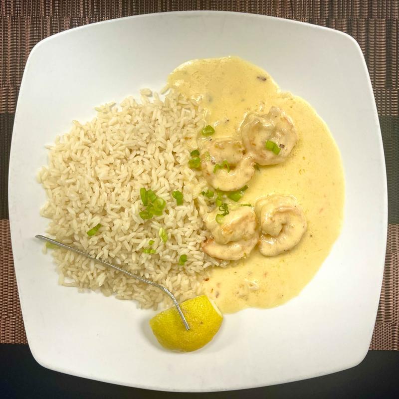 Sautéed with garlic, tomatoes, and Monterey Jack cream sauce with white rice.